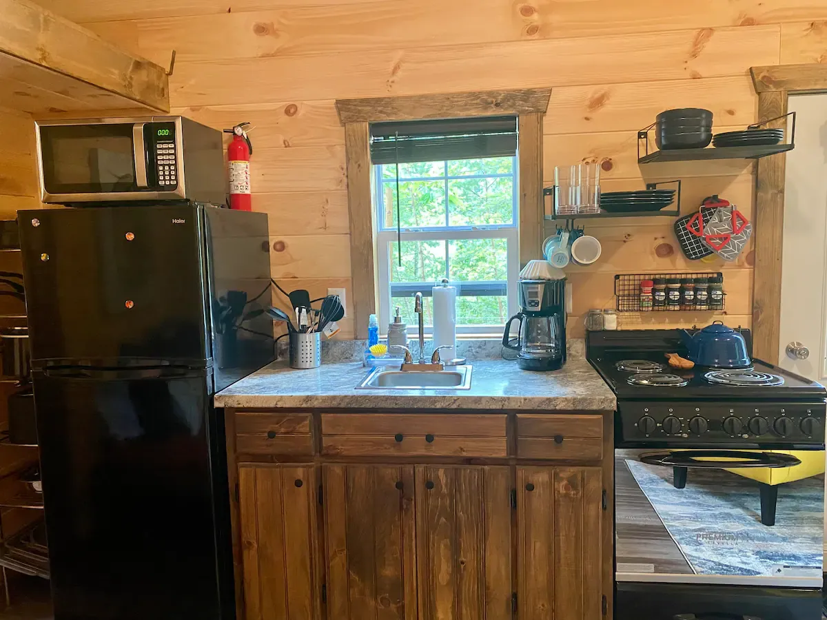 This cabin is designed for a perfect couples getaway. You have a fully furnished kitchen & anything else you may need for your couples weekend. All of the amenities & none of the stress. We are pet friendly. Located in the heart of Cliffview Resort. Hiking, walking, zipline adventure. Fire pit & a wonderful deck to enjoy nature. There is also a charcoal grill. There are six small catch & release lakes in the resort. Hiking the RRG provides wonderful memories & breathtaking scenery.
