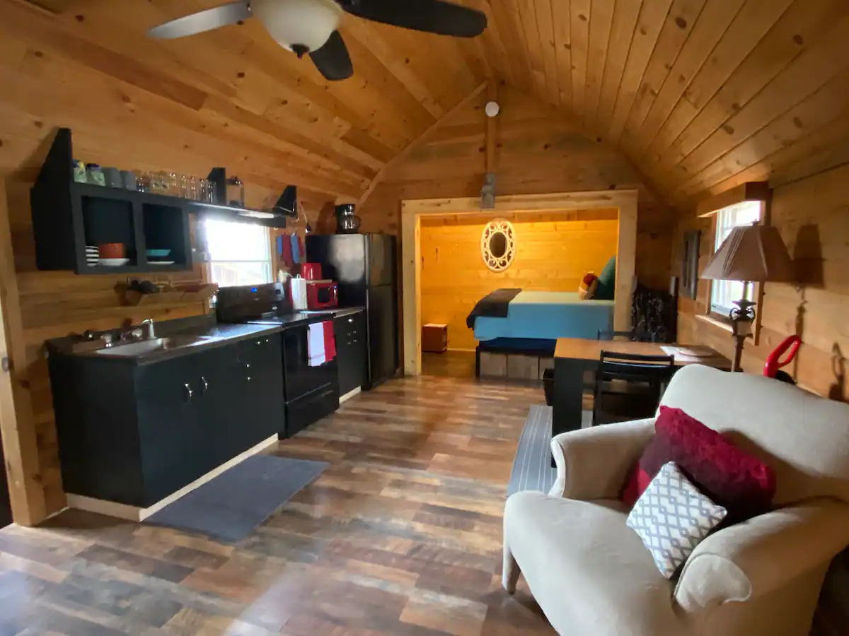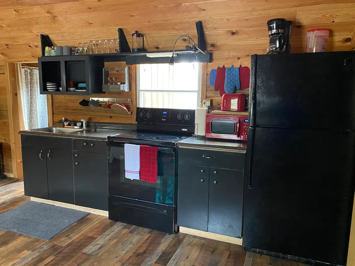 Wild at Heart is a studio Cabin designed for two people who "just want to get away." This cute little cabin has everything you could possibly need and not all of the maintenance. The hiking trails and fishing lakes are right here in the resort.